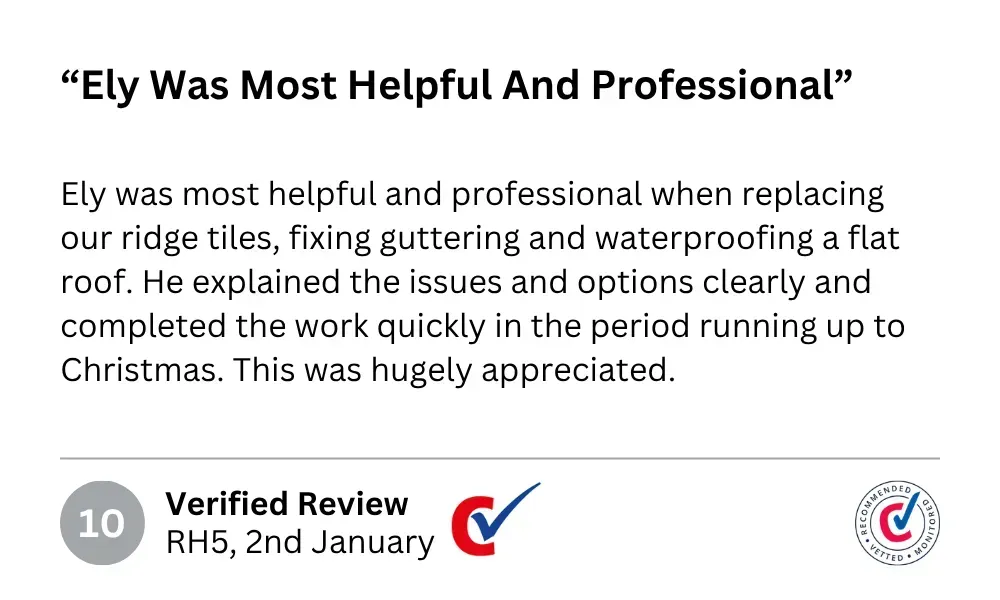 "Hi I'm Ely and I've been roofing in West Sussex for over 6 years. I started this business with one goal - to give homeowners a straight, honest service without the hard sell or hidden costs.
